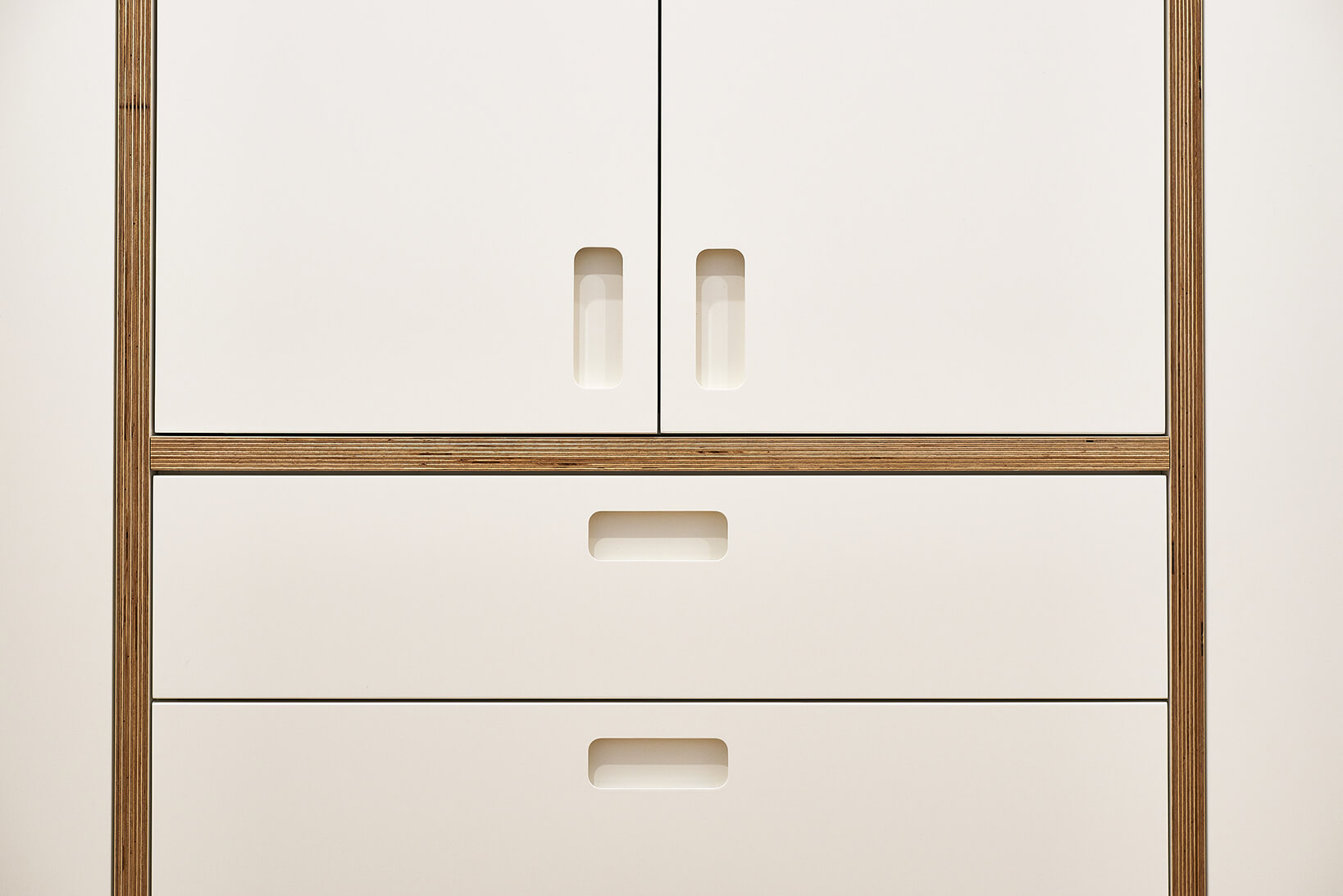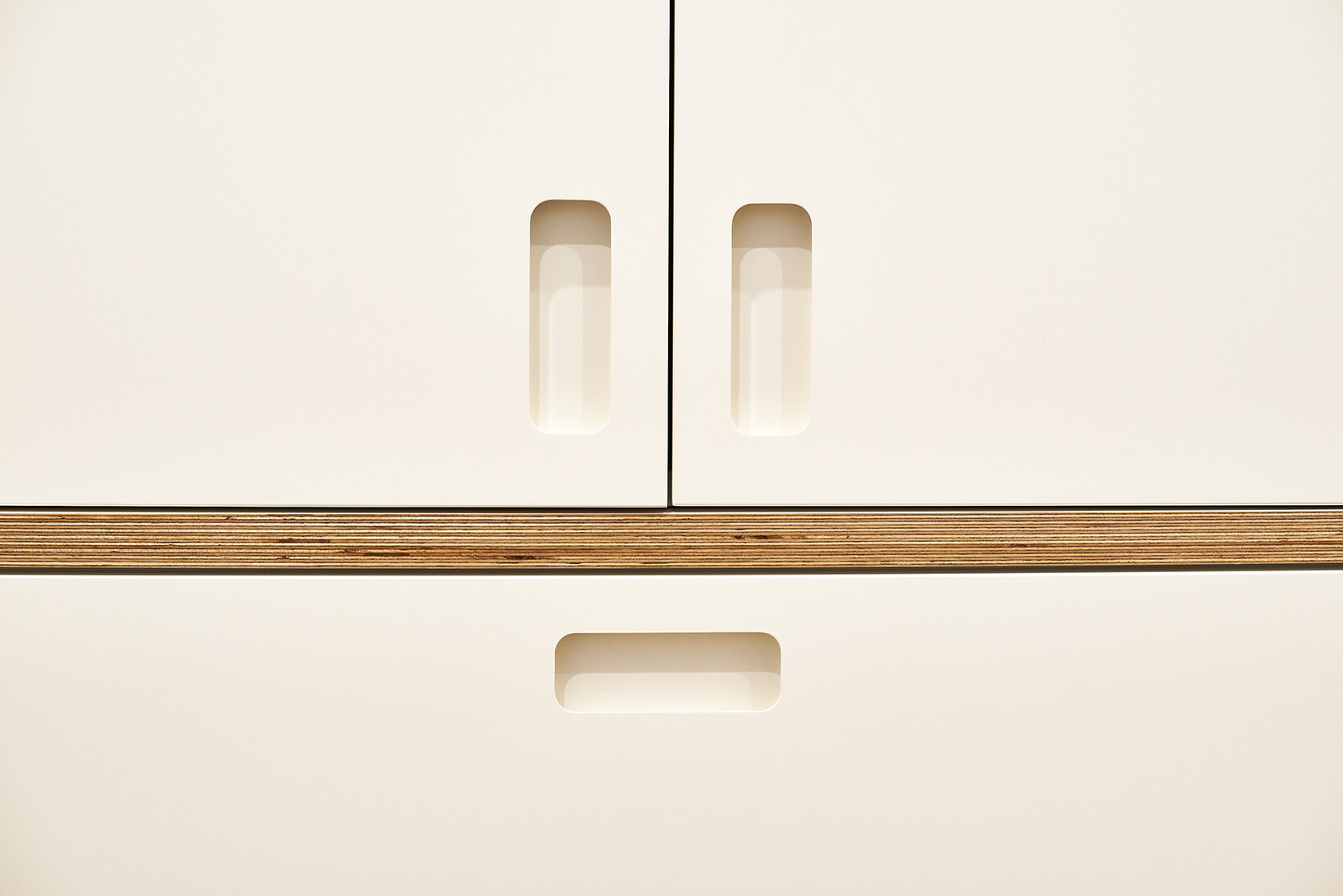 Vaulted roof and highlight windows to increase light and space and living areas.